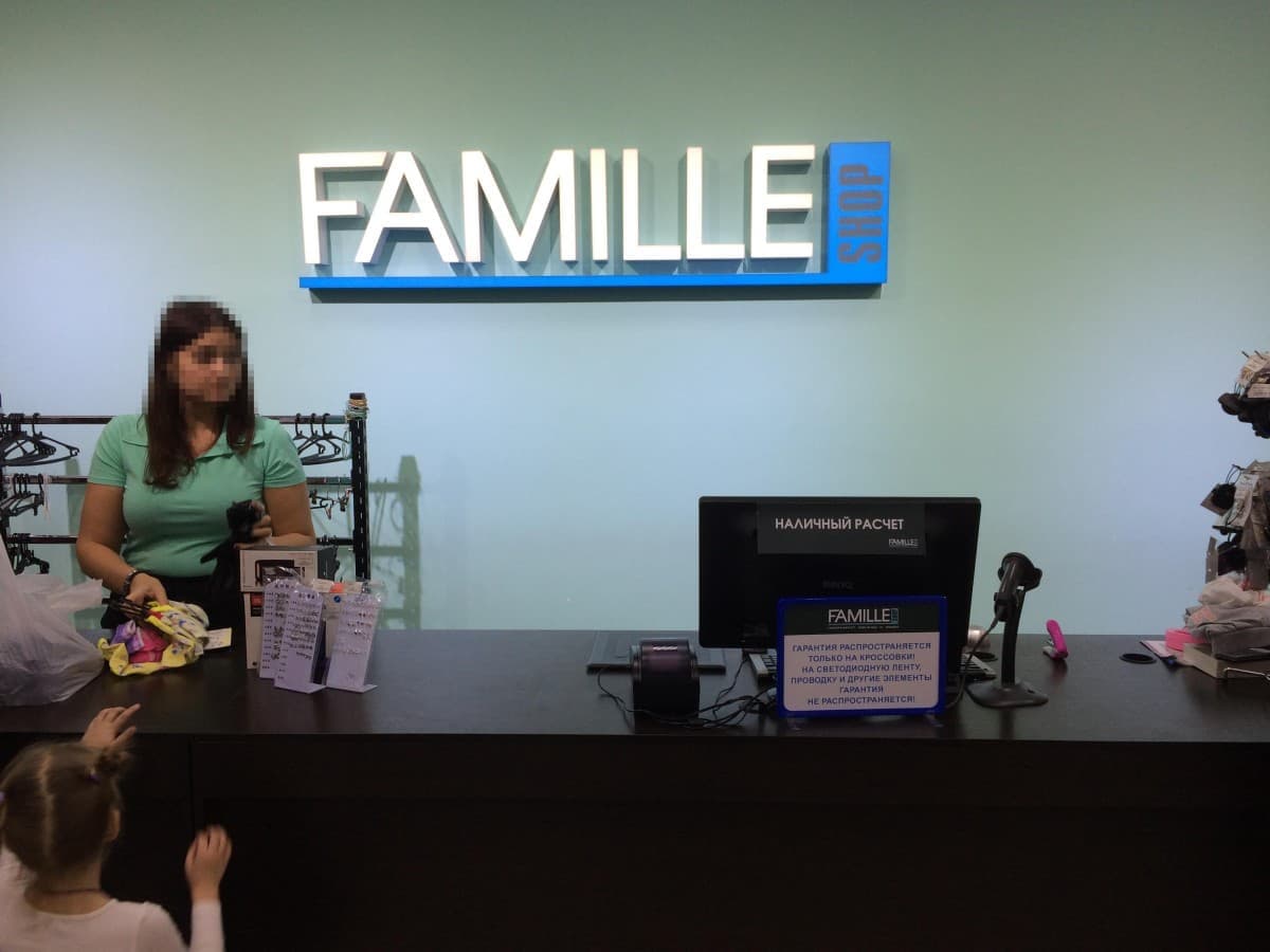 Гипермаркет одежды, обуви и аксессуаров в краснодарском ТК SBS MEGAMALL. Три кассовых рабочих места с программным обеспечением Frontol 5 Торговля 54-ФЗ и ККТ АТОЛ 55Ф. На компьютере товароведа — принтер этикеток TSC TDP-225 и Далион Управление магазином. ПРО